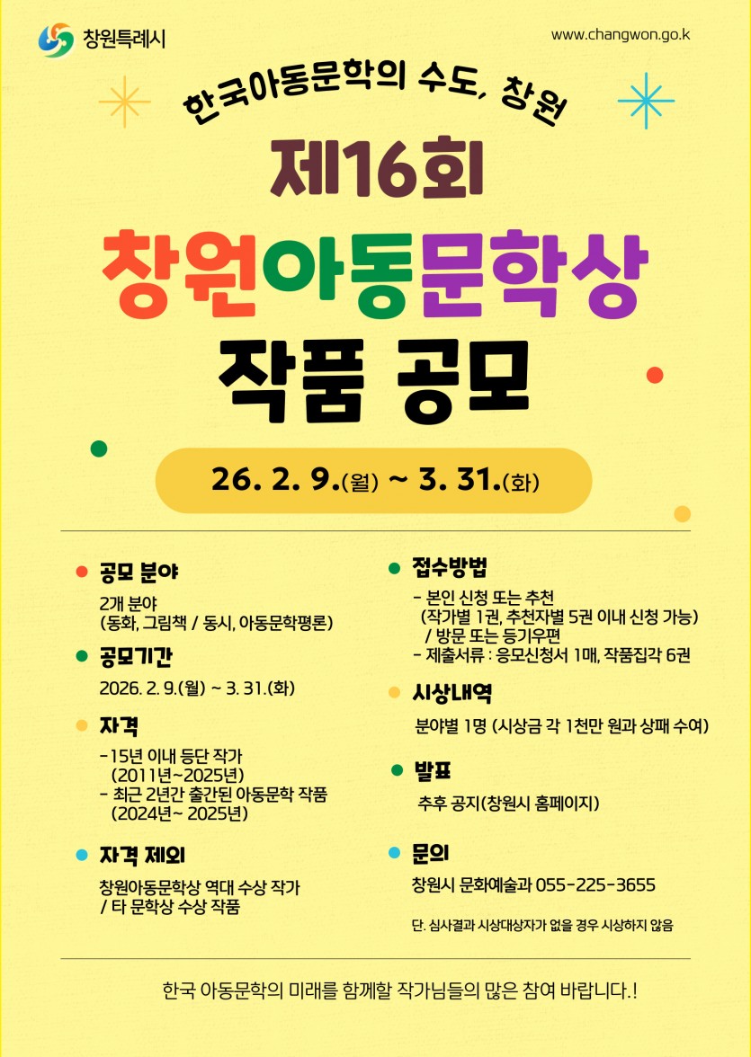 - 제16회 창원아동문학상 공고문 및 제출서류.hwpx (54.8K) 2회 다운로드 | DATE : 2026-02-10 11:15:34